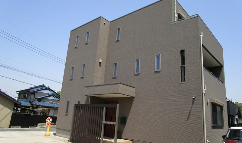 | 朝倉IC・市役所・名鉄朝倉駅方面から | 「知多市役所東」交差点から国道155号線(旧道)を南下して、大きな左カーブを過ぎ、最初にある信号交差点が、「東屋敷」交差点です。 「東屋敷」交差点の左側(北側)にある茶色の3階建ての建物が事務所です。 国道沿い(事務所の正面)に、5台分の来客用駐車場があります。 |
